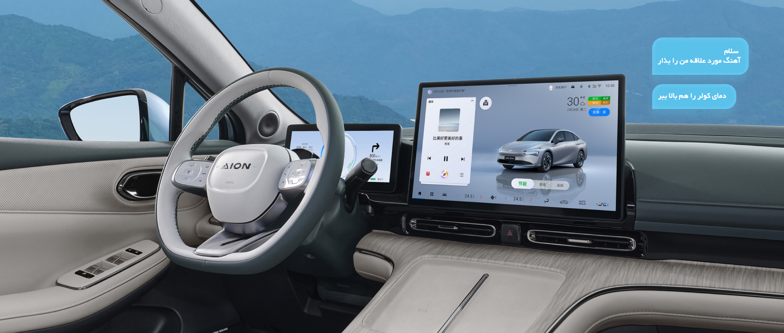 نمای داخلی خودروی GAC Aion S Max 2024 طراحی مدرن و جذابی دارد. کابین آن جادار و راحت است، با استفاده از مواد باکیفیت و طراحی مینیمالیستی که فضای لوکسی را برای سرنشینان فراهم میکند. صفحه نمایش بزرگ لمسی در مرکز داشبورد به عنوان مرکز کنترل خودرو عمل میکند و امکاناتی مانند سیستمهای چندرسانهای، ناوبری، و تنظیمات مختلف خودرو را ارائه میدهد. سیستم نورپردازی محیطی، صندلیهای چرمی و امکاناتی نظیر شارژر بیسیم و کنترلهای دیجیتال برای تهویه مطبوع از دیگر ویژگیهای داخلی این خودرو هستند.